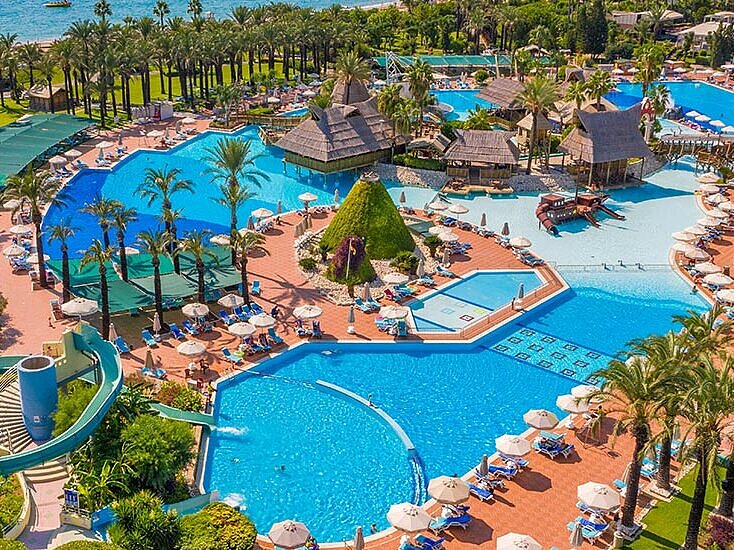 Luksustason perhehotelli, jossa on suuri vesipuisto, lastenkerho ja minihuvipuisto.