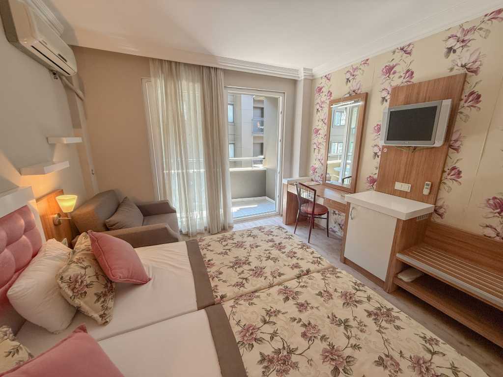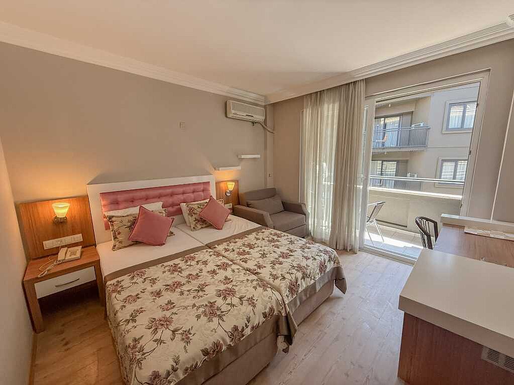 Bilkay Hotelin huoneet ovat hiljattain remontoituja ja sisustettu yhdistelmällä perinteistä ja modernia tyyliä. Sisustus on valoisa ja käytännöllinen – täydellinen sinulle, joka arvostat sijaintia ja yksinkertaisuutta. Kaikissa huoneissa on parveke ja kaikki tarvittavat mukavuudet lomalle.