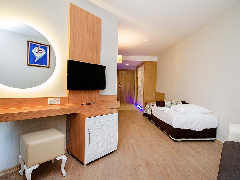Hotellin uusi vesipuisto, viihtyisä allasalue, läheisyys keskustaan sekä mukava leikkipaikka tekevät tästä täydellisen vaihtoehdon perheille, jotka matkustavat yhdessä lasten kanssa tai pariskunnille, jotka haluavat majoittua lähellä Alanyan keskustaa, mutta rauhallisemmalla alueella.
