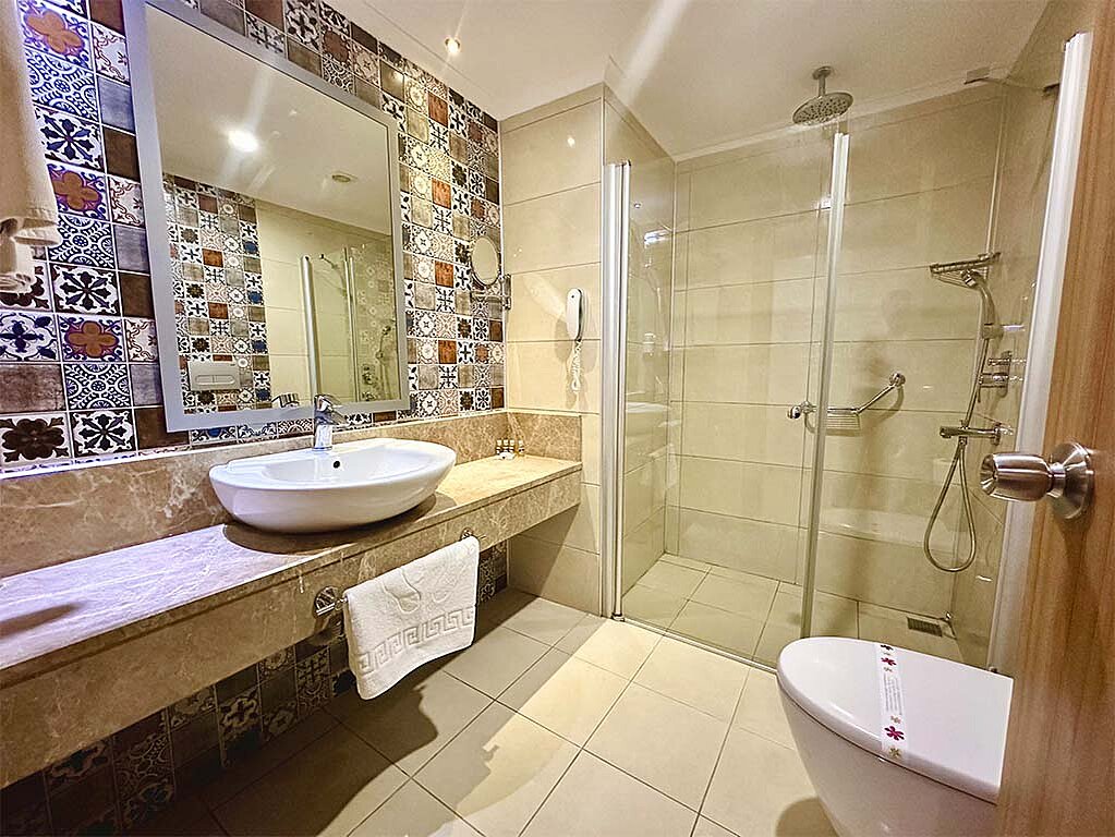 Blue Wave Hotelin spassa on turkkilainen hamam, josta voit nauttia ilman lisäkustannuksia kahden tunnin ajan päivässä. Spassa voit myös hemmotella itseäsi rentouttavalla hieronnalla tai kuorinnalla – onhan rentoutuminen lomalla tärkeää!