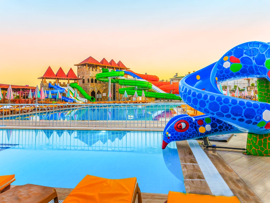 Isot lapset ja leikkisät aikuiset rakastavat beach clubin suurta vesipuistoa, jossa on peräti 12 upeaa vesiliukumäkeä. Pienemmille lapsille on useita erillisiä lastenaltaita, joissa on muun muassa upea merirosvolaiva, pienempiä vesiliukumäkiä ja muita hauskoja vesileikkejä. Yhden lastenaltaan ympäri kulkee pieni lazy river, jossa pienimmät voivat kellua uimarenkailla.
