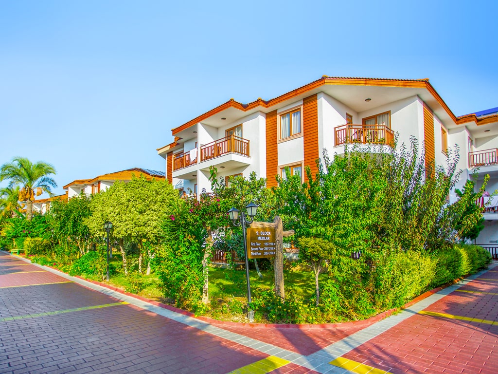 Eftalia Villagessa sinut toivotetaan tervetulleeksi elävään ympäristöön, jossa vehreät puutarhat kauniiden talojen välissä luovat kodikkaan lomatunnelman.