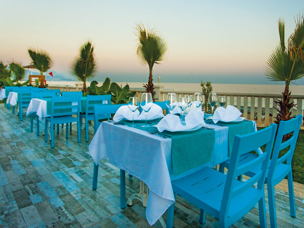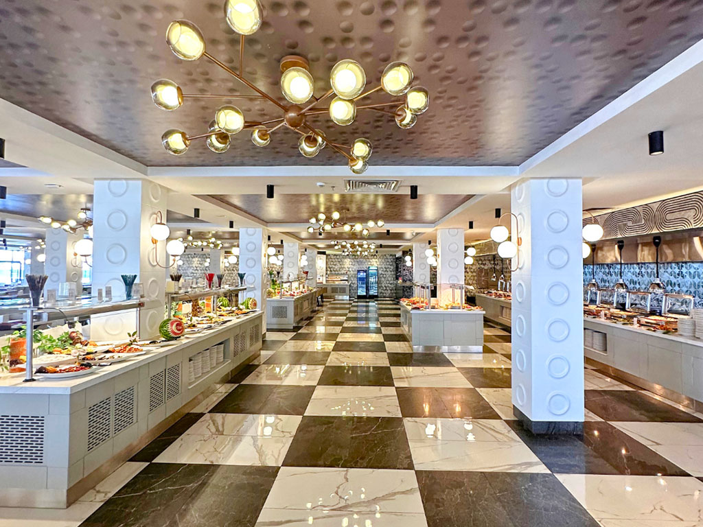 Pääravintolassa tarjoillaan buffet-aamiainen, lounas ja illallinen. Päivän aikana on tarjolla erilaisia välipaloja, kuten pizzaa, kebabia, tuoreita hedelmiä ja leivonnaisia hotellin alueella.