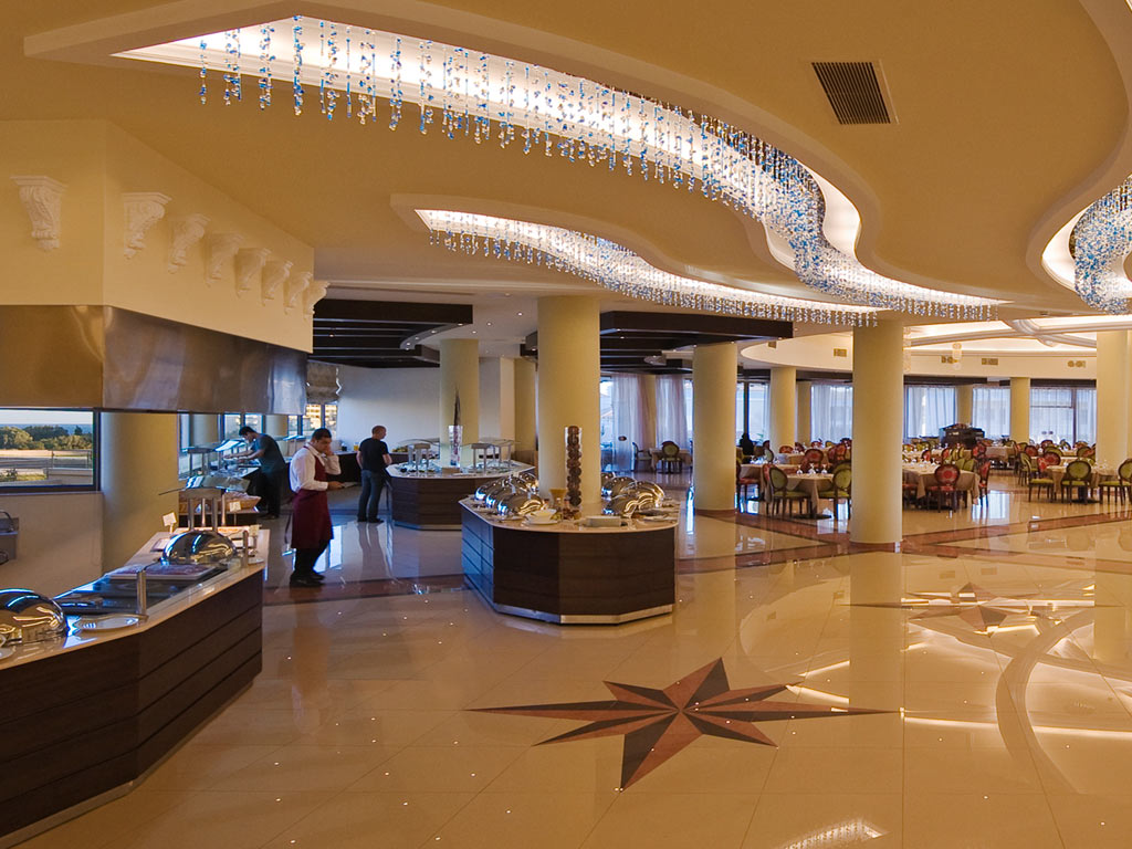 La Marquisen valoisa ja suuri pääravintola sijaitsee päärakennuksessa, ja täällä on tarjolla kreikkalaisia, välimerellisiä ja kansainvälisiä erikoisuuksia kolmella pääaterialla. Voit nauttia ruoastasi joko ravintolan sisällä, tai ulkona viihtyisällä terassilla. Välillä täällä järjestetään teemailtoja kuten kala-, kreikkalais-, italialais- ja aasialaisteemalla.