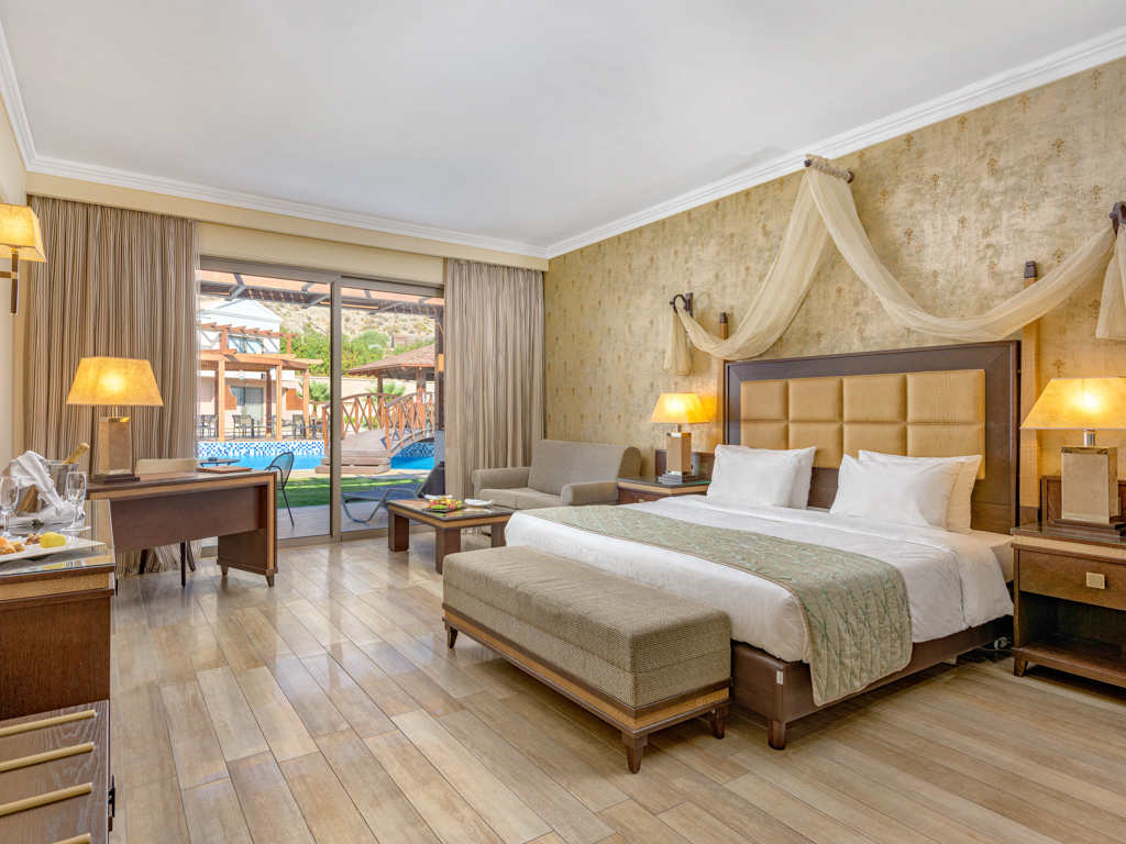 Tässä noin 70 m² sviitissä on kaksi erillistä huonetta kahdessa eri kerroksessa sekä suora pääsy omaan altaaseen. Huonetyyppi vaatii vähintään kaksi täysihintaista, enimmillään täällä voi asua neljä aikuista sekä yksi lapsi ja mahdollisuus on yhteen lapsialennukseen.