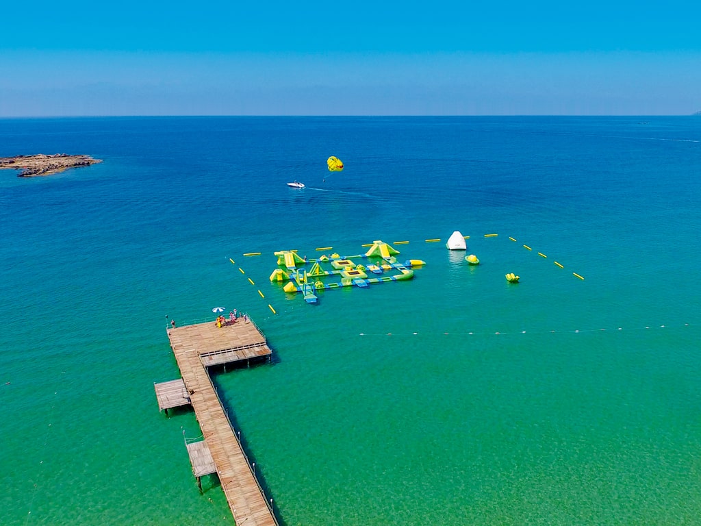Tämä suuri All Inclusive -hotelli sijaitsee Incekumissa, suoraan pitkän kultaisen hiekkarannan äärellä, jossa ranta on matala. Vedestä löytää jännittävän wipeout-radan, jossa on upeita esteitä ja joita Nazarin vieraat voivat käyttää maksutta.