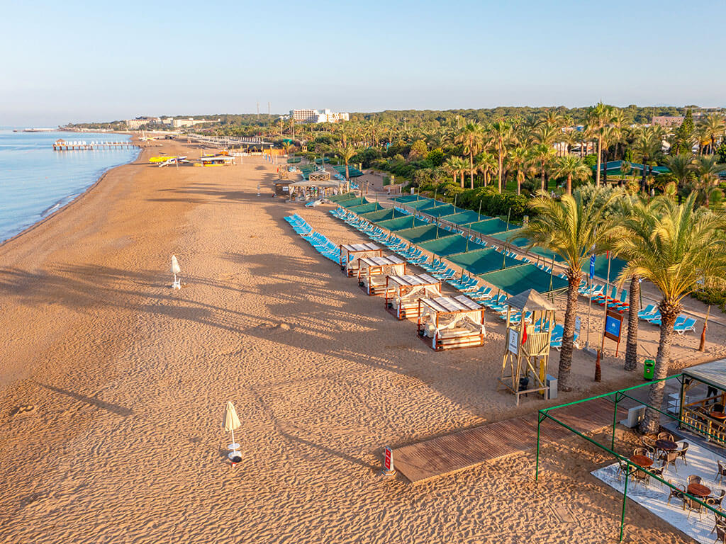 Välimeren siniset aallot ovat vain kivenheiton päässä suuresta uima-altaasta. Polut rannalle kulkevat vihreän alueen läpi, jota reunustavat huojuvat palmut. Hotellin oma ranta on leveä ja täydellinen hiekkalinnojen rakentamiseen!