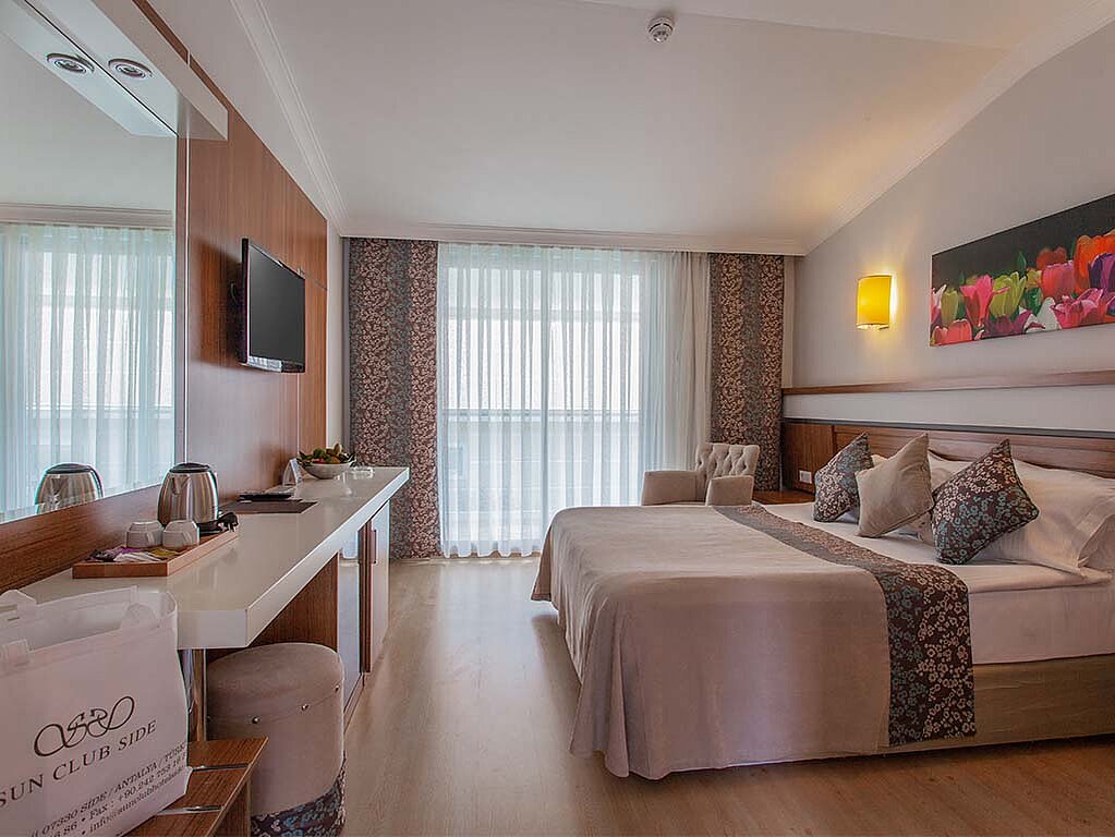 Turkin eteläisen lomakohteen Siden sydämessä sijaitsee kantavieraiden suosikki Sun Club Side. Tämä All Inclusive -hotelli on klassista country club -tyyliä ja sijaitsee turistialueen sydämessä. Hotellialueella vallitsee kuitenkin rauhallinen tunnelma vehreiden ja hyvin hoidettujen puutarhojen keskellä.