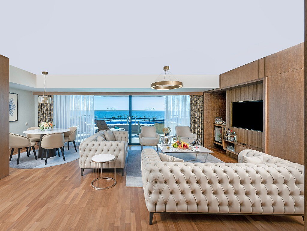 Uskomaton sviitti, jonka suurella parvekkeella sijaitsevalta yksityisaltaalta aurinkotuoleilla avautuu fantastinen näköala merelle. Saat kolme ihanan suurta huonetta: suuren, tyylikkäästi kalustetun olohuoneen sekä kaksi suurta makuuhuonetta. Täällä on kaksi kylpyhuonetta, molemmissa on suihkukaappi ja poreamme. Molemmissa makuuhuoneissa on kaksi kunnollista sänkypaikkaa, ja tarvittaessa yksi lisävuode on mahdollinen.