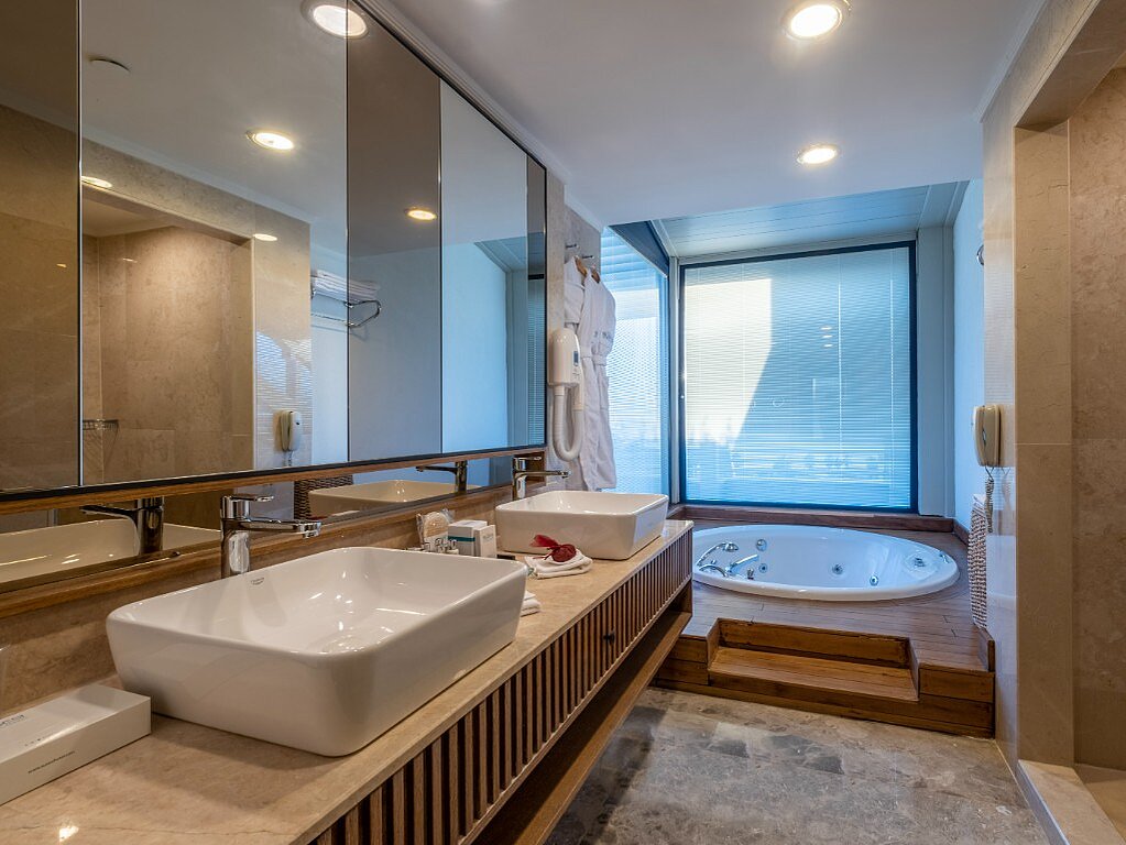Tämä ylellinen sviitti on kooltaan 80 m² ja täällä on kaksi huonetta, joiden välillä on viisi pienempää rappusta. Sviitissä on makuuhuone ja yhdistetty olo-/makuuhuone. Täällä on kaksi tv:tä, parkettilattia ja Bvlgari-tuotteita kylpyhuoneessa. Kylpyhuoneitakin on kaksi, joista toisessa on suihku ja toisessa on poreamme. Sviitti on täydellinen valinta kuherruskuukauden viettoon tai perheille, jotka haluavat lomaltaan hieman enemmän.