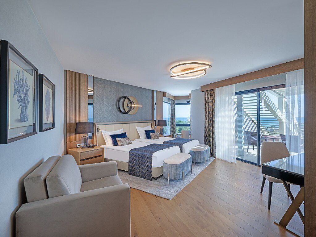 Seniori-sviitti on kooltaan 76 m² ja on mannernäköalalla tai osittaisella merinäköalalla. Huoneessa on kaksi erillistä makuuhuonetta, joissa kummassakin on kaksi kunnollista sänkypaikkaa.