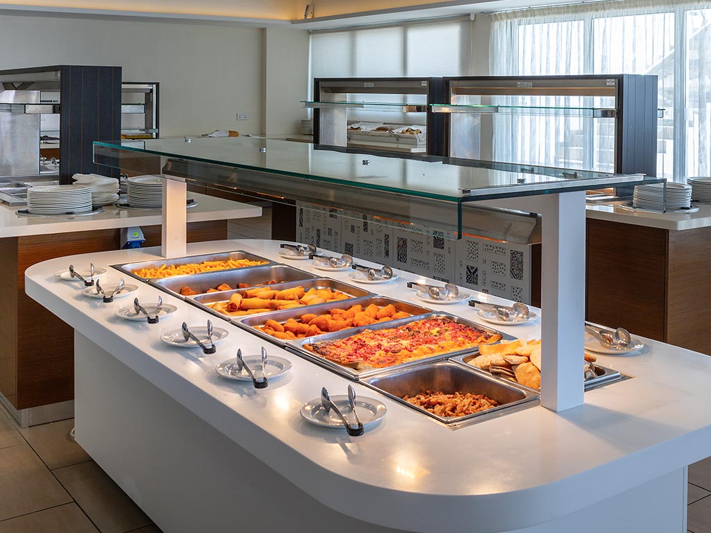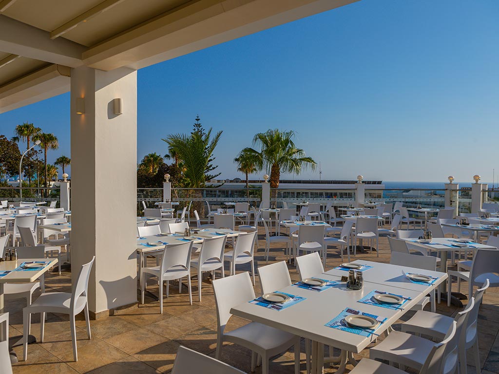 Tässä hotellissa All Inclusive sisältyy hintaan. Tämä tarkoittaa, että suurin osa ruokia ja juomia on jo valmiiksi maksettu. Hotellin kahdessa buffé-ravintolassa voi nauttia päivän kolmesta pääateriasta ja valita vapaasti kaikista tarjolla olevista vaihtoehdoista. Iltaisin toisessa buffé-ravintolassa järjestetään teemailtoja, joissa tarjoillaan ruokia esimerkiksi paikallisesta kyproslaisesta tai aasialaisesta keittiöstä.