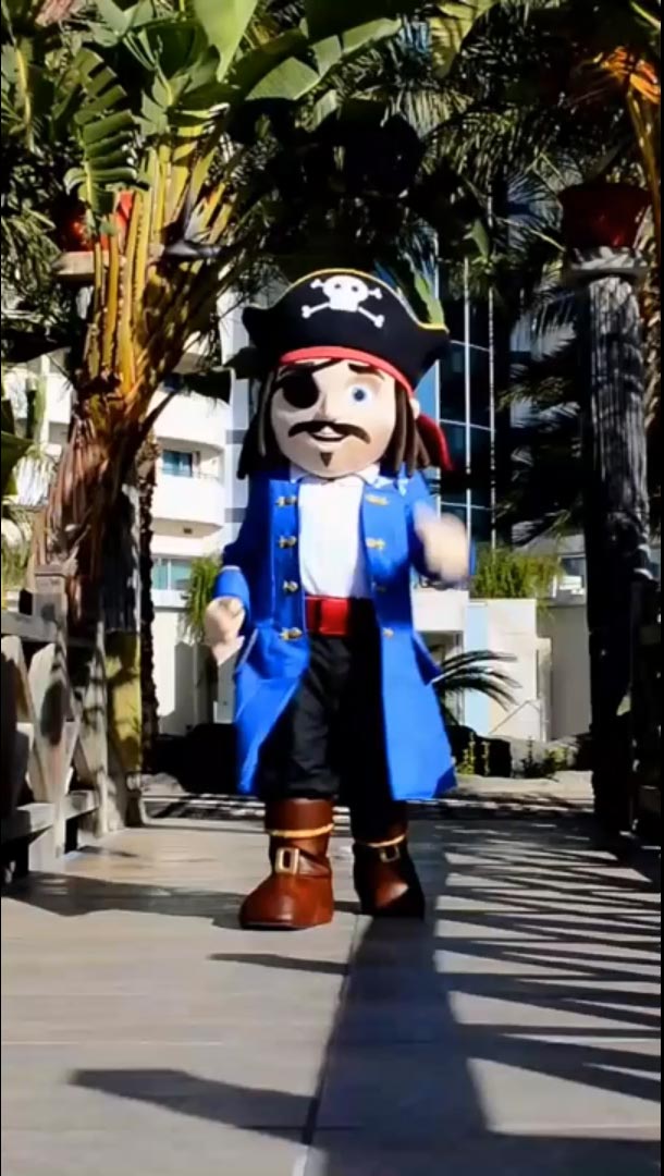 - Tullessasi merirosvoksi tulee olla uskalias. Parasta kuitenkin on, että kaikista voi tulla merirosvoja! Pitää vain seurata minua ja miehistöäni hotellilla, niin autamme sinua tulemaan aidoksi merirosvoksi lomasi aikana.