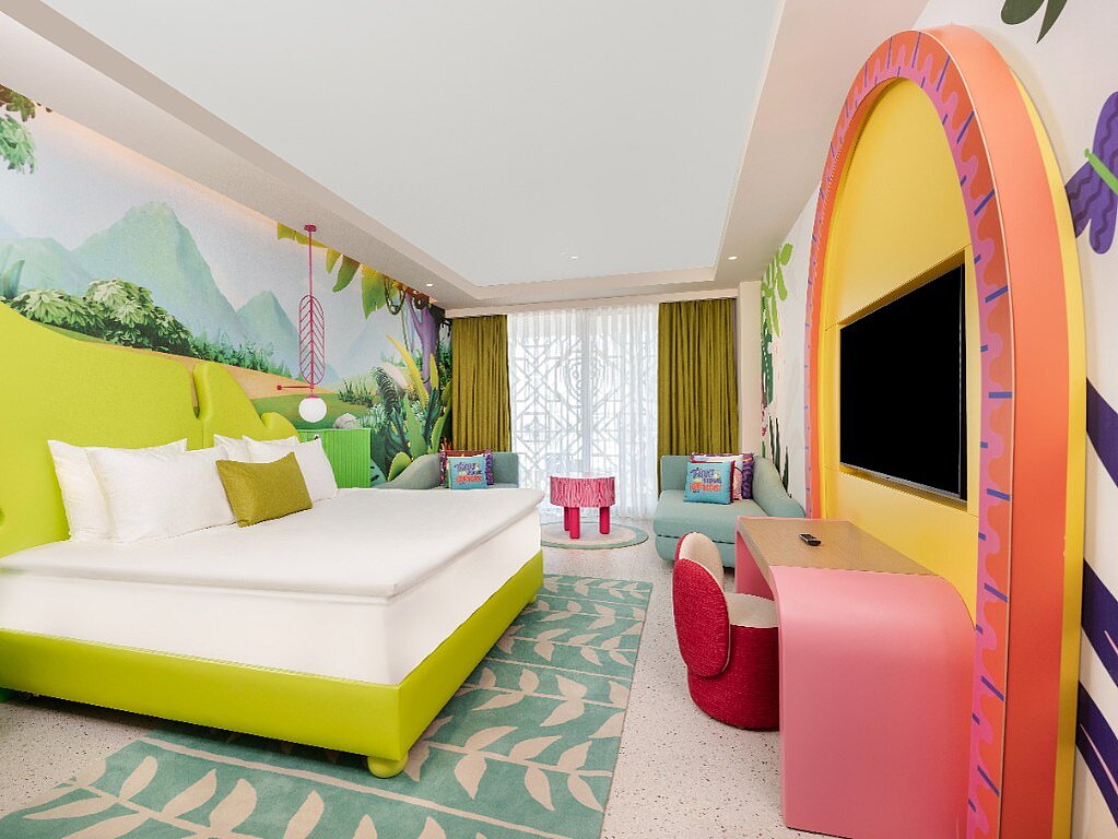 Nickelodeon Hotels & Resortsissa huoneet eivät ole vain nukkumista varten – ne ovat elämys jo itsessään. Moni henkäisee “wau” jo sisään astuessaan, sillä teema jatkuu täälläkin ja tekee myös tauoista teemapuiston, altaan ja aktiviteettien välillä ikimuistoisia.
